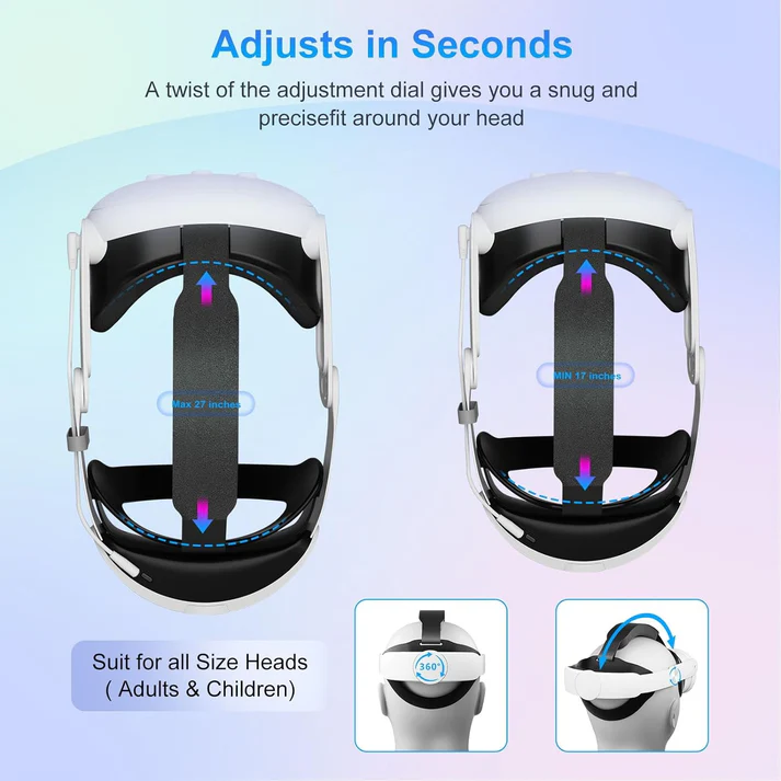 This head strap with built-in battery is designed for the Meta Quest 3, providing extended playtime and improved comfort. Featuring a 10000mAh battery, it significantly increases usage time while maintaining balanced weight distribution for reduced head pressure. The ergonomic elite-style design offers enhanced stability and support, making it ideal for long VR sessions. It is easy to install and serves as a reliable replacement or upgrade accessory for Quest 3 users seeking better performance and comfort.