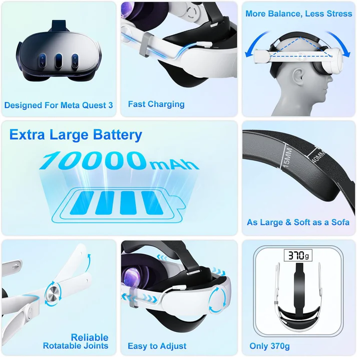 Head Strap with 10000mAh Battery for Meta Quest 3