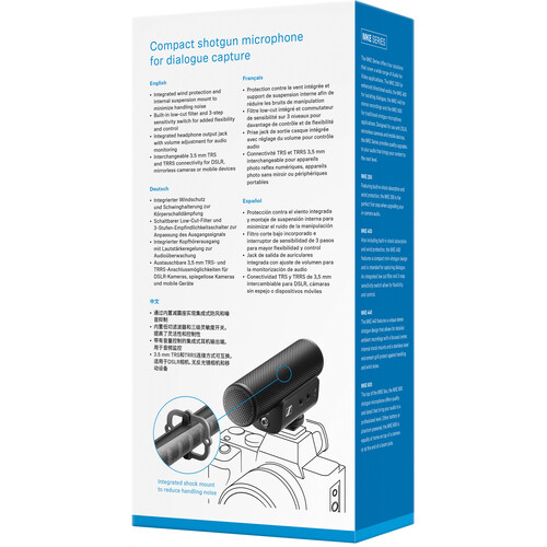 Add the compact and lightweight second-generation Sennheiser MKE 400 directional shotgun microphone to your camera- or smartphone-based shooting rig to make an easy upgrade in sound quality, even in noisy environments, without having to carry around a cumbersome windscreen and suspension system. Plus, it offers a 3-stage gain control and a low-cut filter so you can optimize the sound of your recording right at the mic.