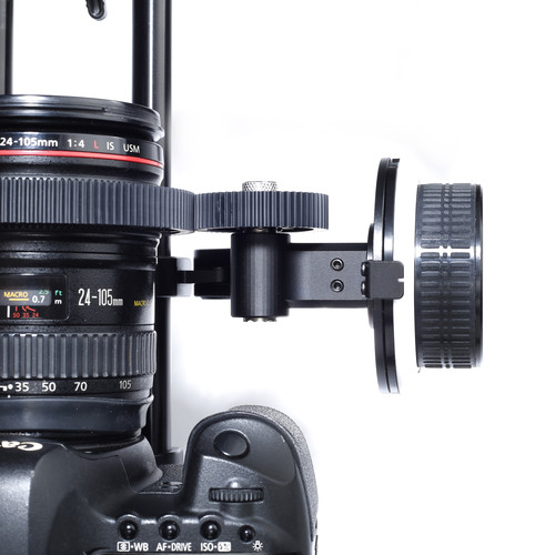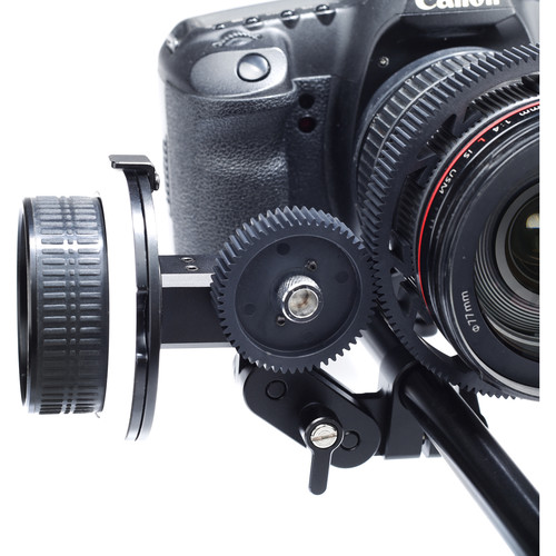 The follow focus is machined from aluminum with a black anodized finish for corrosion resistance and to reduce reflections. Included with the follow focus are three removable lens gears allowing you to add gears to lenses that don’t have any, such as still photography lenses. The drive gear can be secured to either side of the follow focus, providing flexibility in positioning where the follow focus can be tightened down relative to other rig components.
