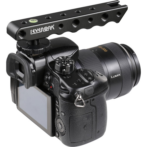 The Sevenoak Video Stabilizing Top Handle attaches to your camera’s cold/hot shoe and provides a way to support your camera with only one hand. Made from anodized aluminum, the handle is lightweight and durable with a corrosion-resistant finish. Once mounted, you can orient the top handle to project forward or rearward without removing it from your camera’s shoe. The integrated bubble level gives you a visual representation as to the level of your camera.