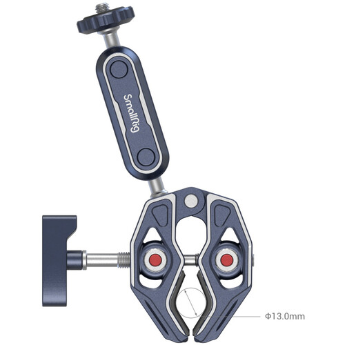 Mount an accessory onto a surface, rod, or pipe with this Crab-Shaped Clamp with Ball Head Magic Arm from SmallRig. This mount features a crab clamp and an articulating magic arm. The durable aluminum and stainless steel clamp can support an accessory such as a light, monitor, or wireless gear weighing up to 7.7 lb using its multiple 1/4″-20, 3/8″-16, and 3/8″-16 anti-twist threads.