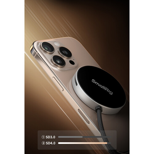 The SD 4.0 Card Reader from SmallRig is an ultra-high-speed card reader designed to conveniently magnetically attach to a smartphone, tablet, or laptop that can transfer data quickly and minimize downtime while shooting. It features a MagSafe-compatible magnetic mounting surface, plus a built-in USB-C cable with a right-angle plug that won’t get in the way. This stylish SD 4.0 card reader has a speed of 312 MB/s and can transfer 1GB of data in just 3 seconds.