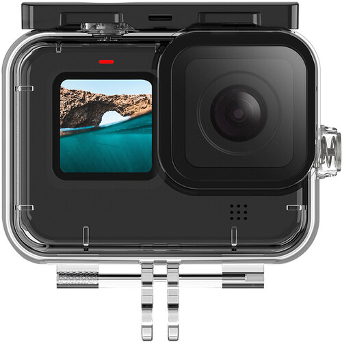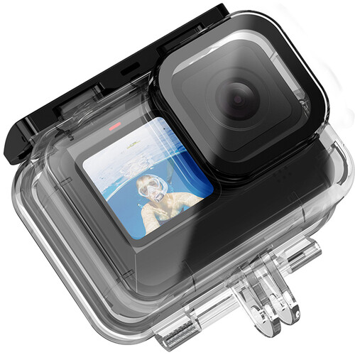 Capture vibrant underwater footage and manage and correct underwater color deviation that would otherwise affect the image captured by your GoPro HERO9/10/11/12 with this Underwater Housing & Lens Filter Kit for GoPro from TELESIN. The clear, protective polycarbonate housing is lightweight and conveniently compact, weighing only 4.7 oz. It is also waterproof to depths of 148′ and easily mountable using the included mounting buckle or the 2-prong mount with included thumbscrew.