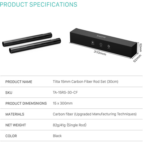 Tilta 15mm Carbon Fiber Rod Set (11.8″, Pair) Overview