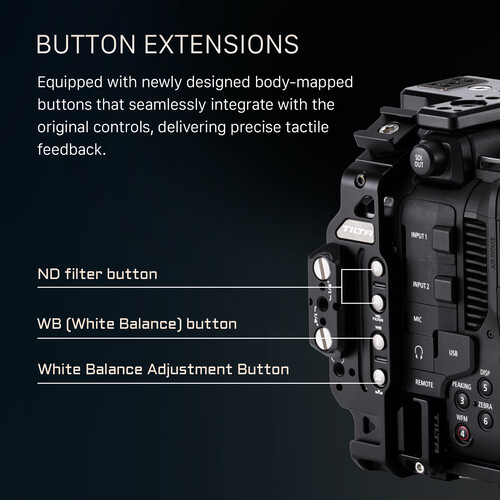 A modular cage system for using the Canon C80 cinema camera in different configurations, this Camera Cage Base Kit from Tilta is made up of top and bottom plates, left and right side arm plates, and multiple mount options via multiple 1/4″-20 and 3/8″-16 threads and the included NATO rail and cold shoe. In addition to clearance for ports, power and settings buttons, and heat dissipation vents, this C80 cage features one side plate with button extensions for tactile feedback with the original controls, while the other side plate offers easy use in the vertical orientation with multiple mount points. The top plate also allows unobstructed access to the native top handle mounting point.