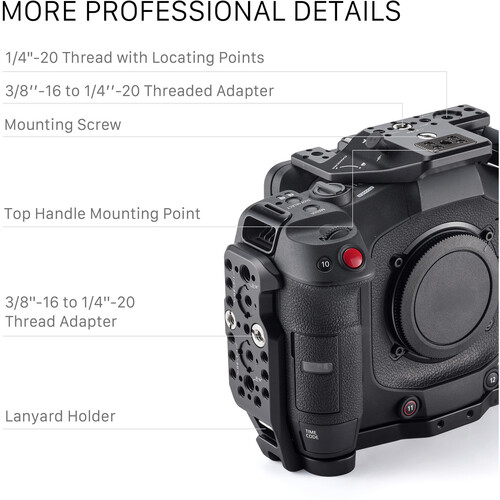 A modular cage system for using the Canon C80 cinema camera in different configurations, this Camera Cage Base Kit from Tilta is made up of top and bottom plates, left and right side arm plates, and multiple mount options via multiple 1/4″-20 and 3/8″-16 threads and the included NATO rail and cold shoe. In addition to clearance for ports, power and settings buttons, and heat dissipation vents, this C80 cage features one side plate with button extensions for tactile feedback with the original controls, while the other side plate offers easy use in the vertical orientation with multiple mount points. The top plate also allows unobstructed access to the native top handle mounting point.
