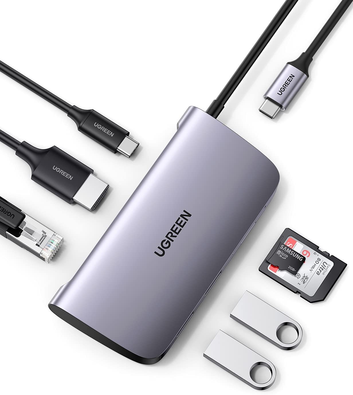 UGREEN 7 in 1 USB-C to 2*USB3.0+HDMI+RJ45+SD+TF +PD port Converter