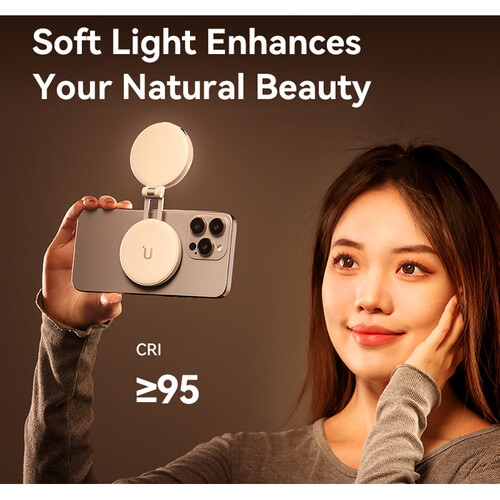 Enhance the lighting in your videos and selfies using the white LM19 MagSafe LED Selfie Ring Light from Ulanzi. It attaches to compatible devices using a MagSafe mount or the included magnetic ring sticker and may be flipped for use with both front and rear cameras. It features an adjustable color temperature of 2800 to 8500K, plus adjustable brightness from 10 to 100% with stepless dimming. With a beam angle of 120°, this light will improve photos and videos taken in low light, or add fill light to content captured under more normal conditions. Its 400mAh battery lasts for around 1.5 hours at full brightness or 8 hours at minimum brightness and can be recharged in 90 minutes using an integrated USB-C port.