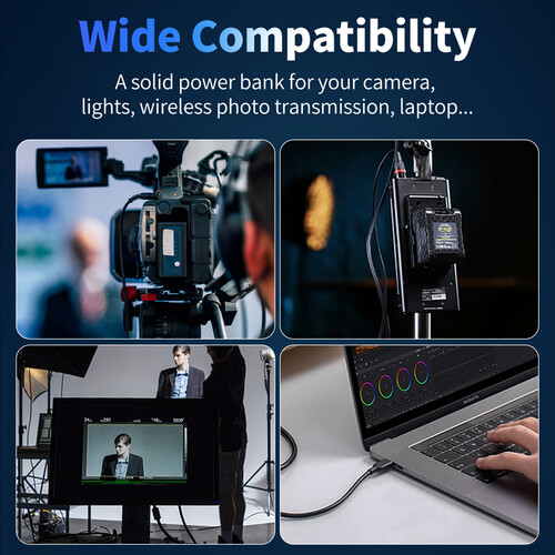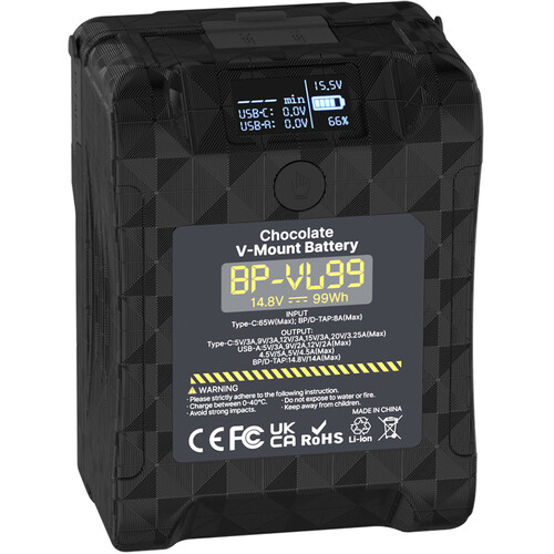 The 99Wh Portable V-Mount Battery from Ulanzi is designed to power cameras, lights, and other equipment. This lithium-ion V-mount battery features a 26,000mAh high-capacity with a 14.8V output to power your devices. It features a USB-C port that conveniently provides 65W PD fast charging. It also provides a clear OLED battery status indicator, as well as two D-Tap ports and a 5V USB-A interface to power additional accessories. The battery has a standard charging time of 3 or 4 hours and a quick charging time of 2 or 3 hours.