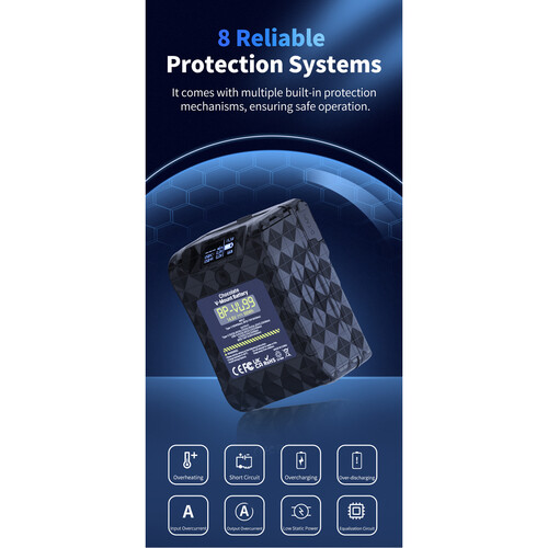 To help maintain the battery’s lifespan, a built-in protection system ensures safety and protection against damage from current or voltage overload, overheating, short circuits, etc.